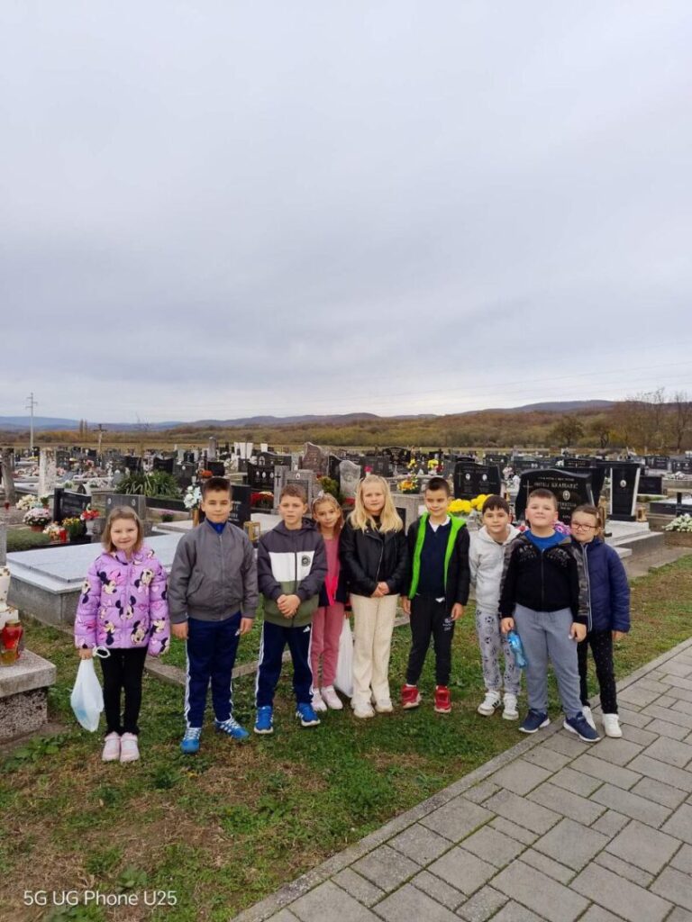 Uoči blagdana Svi sveti prvašići su s vjeroučiteljem Tomislavom posjetili groblje u Vrbovi. Palili su svijeće, obišli grobove svojih baka i djedova i pomolili se za pokojne.
