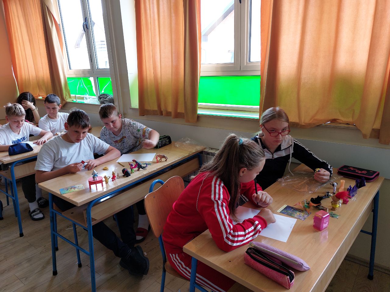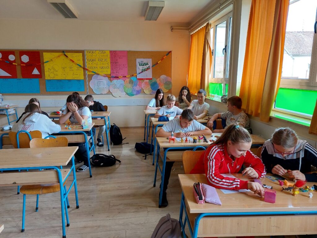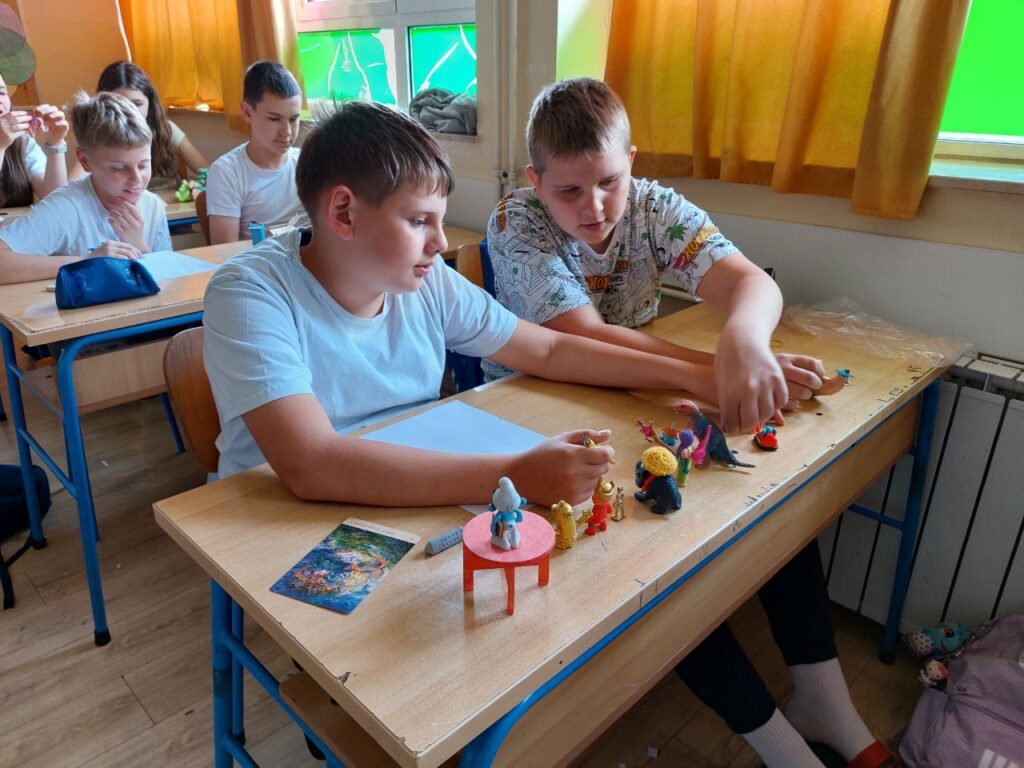 Povodom Svjetskog dana knjige i autorskih prava u travnju je knjižničarka održala kreativnu radionicu Izvanzemaljske priče za učenike od 5. do 8. razreda. Ovogodišnja tema Svjetskog dana knjige bila je Pobratimstvo lica u svemiru, stoga je i naziv radionice, kao i glavni motiv u pričama, bio izvanzemaljac. Prvi sat učenici su na temelju dobivenih igrački (jedna ili nekoliko njih su bile izvanzemaljci) i čarobnih predmeta pisali svoju zanimljivu, otkačenu, duhovitu priču sa uzbudljivim zapletom. Drugi sat je također bio rad u paru, a učenici su zamislili da su izvanzemaljci s različitih planeta. Postavljali su jedni drugima pitanja o njihovom planetu, što tamo uče u školi, kako izgledaju, kakvom se tehnologijom služe, koju zanimljivu hranu drugačiju nego na Zemlji jedu i kako se zabavljaju. Na kraju su uz pomoć galaktičke abecede, uz pomoć neobičnih simbola, napisali poruku Zemljanima i dešifrirali je, odnosno napisali na latinici. Učenici su se uživjeli u kreativno pisano stvaranje kroz igru, stvorili su vlastite zanimljive planete i likove dobrih izvanzemaljaca, kao i likove iz bajki. Napisali su sjajne priče koje bi i izvanzemaljci poželjeli pročitati i zbog njih nam se pokazati na Zemlji.