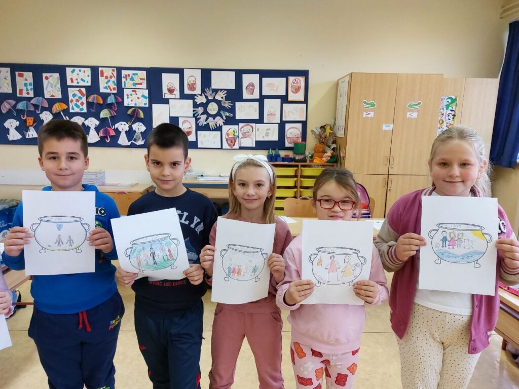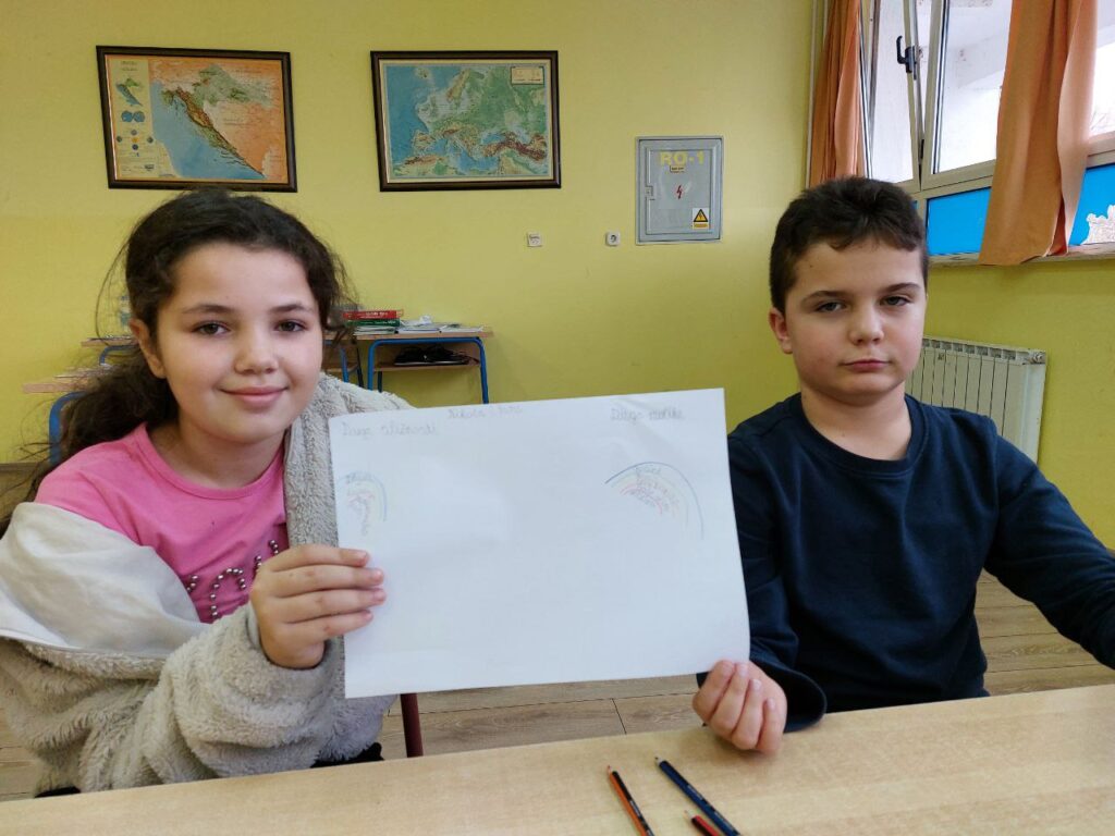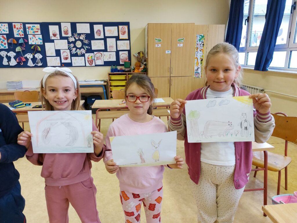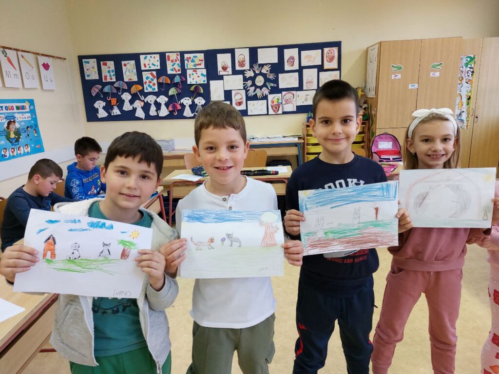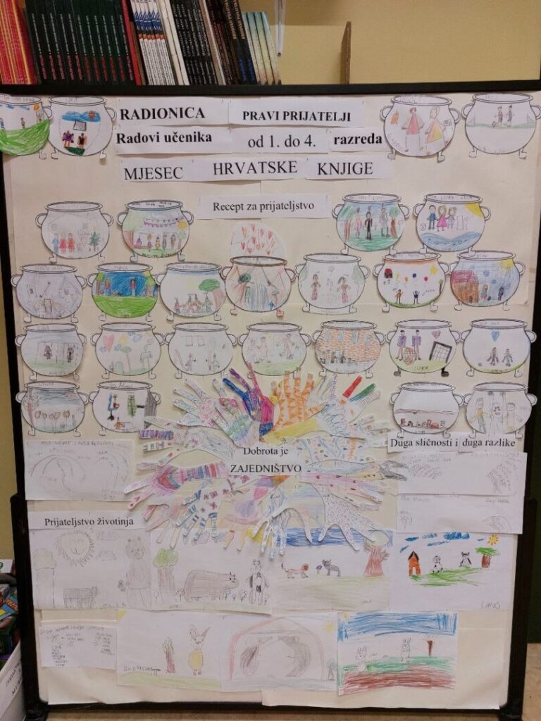 Niži razredi su u 11. mjesecu povodom Mjeseca hrvatske knjige imali radionicu Pravi prijatelji koju je održala knjižničarka. Učenicima se prvo čitala priča o prijateljstvu hrvatske spisateljice, razgovaralo se o pročitanome i o njihovim prijateljima, a zatim su unutar nacrtanog lonca crtali svoj recept za prijateljstvo- svoje prijatelje, sretni zajednički trenutak i simbole prijateljstva. Prvi razred je zatim crtao životinje koje su najbolji prijatelji. Razgovaralo se o životinjskom prijateljstvu kojem su svjedočili uživo ili su o njemu saznali preko interneta. Ostali niži razredi su crtali vlastite ruke kao simbol davanja, a sve njihove su činile zajedništvo koje je vrlo važno u prijateljstvu, kao i dobrota i međusobno pomaganje. Učenici su za kraj napravili dugu sličnosti i dugu razlike i pronašli što ih povezuje, a u čemu su potpuno različiti. Svi su bili zadovoljni kreativnim zadatcima te su se kroz njih još više mogli međusobno povezati i ojačati prijateljstvo. Koliko im je bilo zabavno, možete vidjeti na fotografijama.