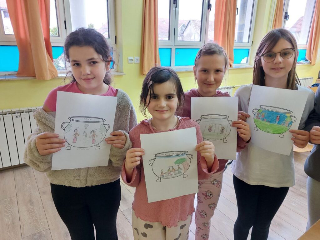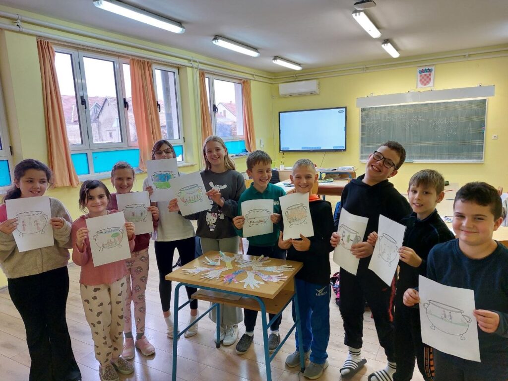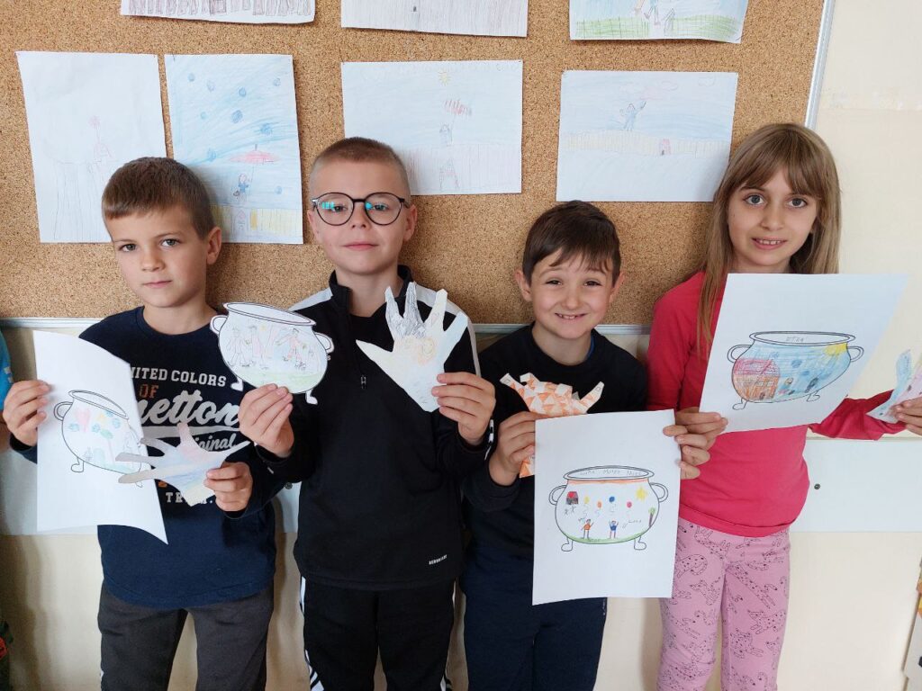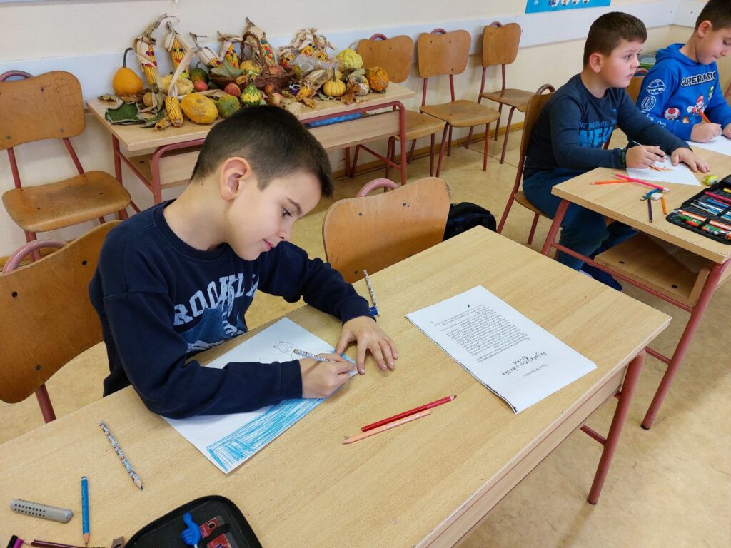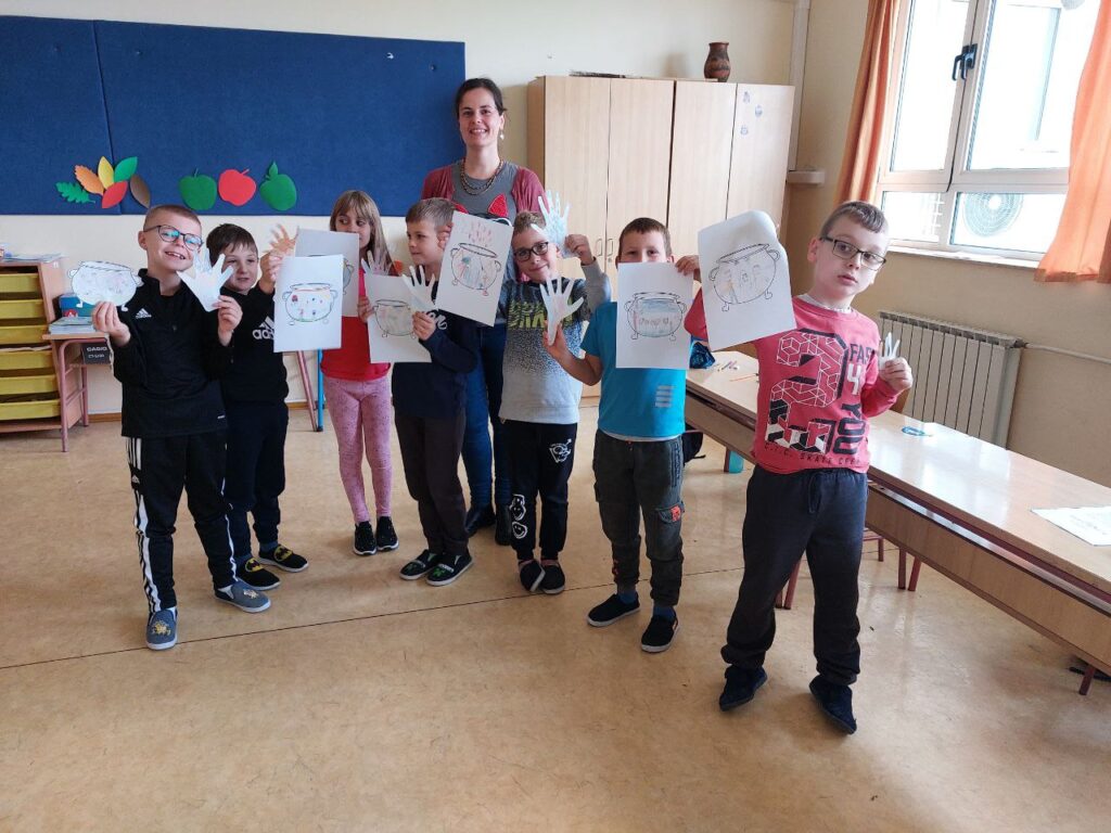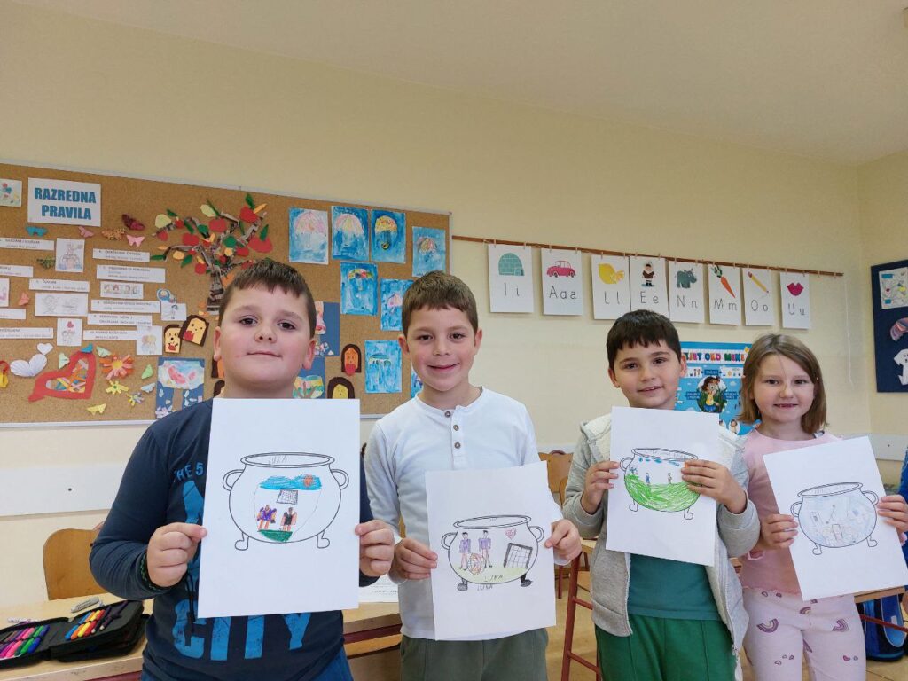 Niži razredi su u 11. mjesecu povodom Mjeseca hrvatske knjige imali radionicu Pravi prijatelji koju je održala knjižničarka. Učenicima se prvo čitala priča o prijateljstvu hrvatske spisateljice, razgovaralo se o pročitanome i o njihovim prijateljima, a zatim su unutar nacrtanog lonca crtali svoj recept za prijateljstvo- svoje prijatelje, sretni zajednički trenutak i simbole prijateljstva. Prvi razred je zatim crtao životinje koje su najbolji prijatelji. Razgovaralo se o životinjskom prijateljstvu kojem su svjedočili uživo ili su o njemu saznali preko interneta. Ostali niži razredi su crtali vlastite ruke kao simbol davanja, a sve njihove su činile zajedništvo koje je vrlo važno u prijateljstvu, kao i dobrota i međusobno pomaganje. Učenici su za kraj napravili dugu sličnosti i dugu razlike i pronašli što ih povezuje, a u čemu su potpuno različiti. Svi su bili zadovoljni kreativnim zadatcima te su se kroz njih još više mogli međusobno povezati i ojačati prijateljstvo. Koliko im je bilo zabavno, možete vidjeti na fotografijama.