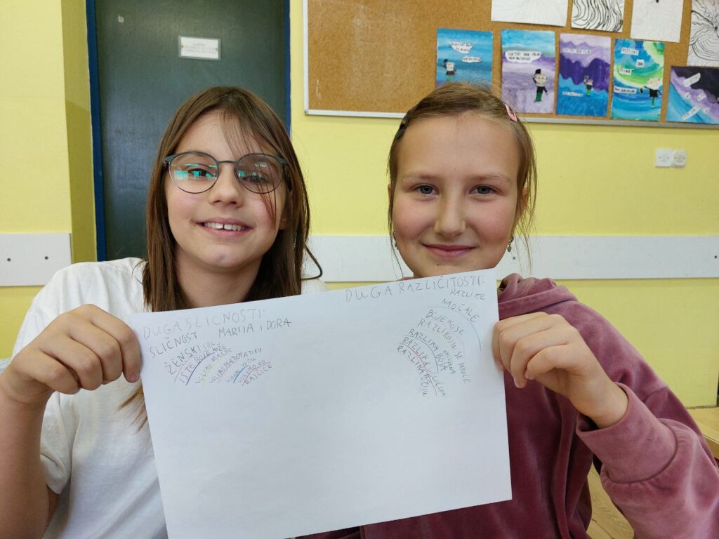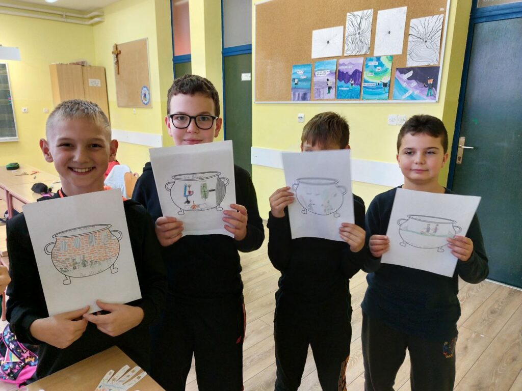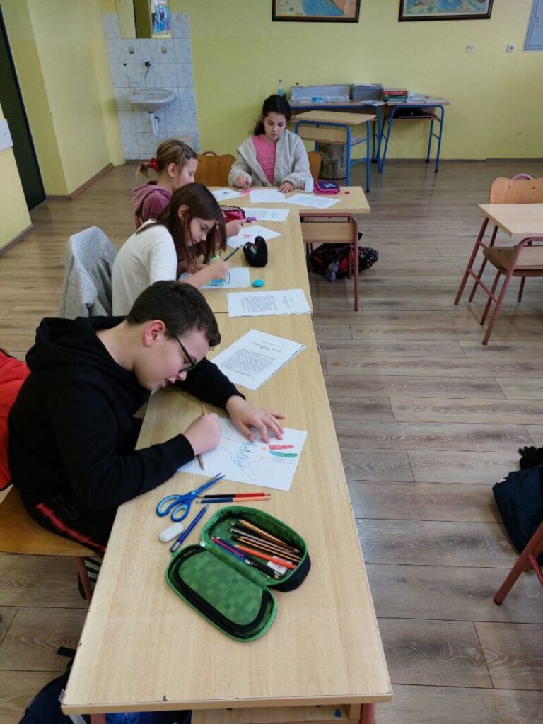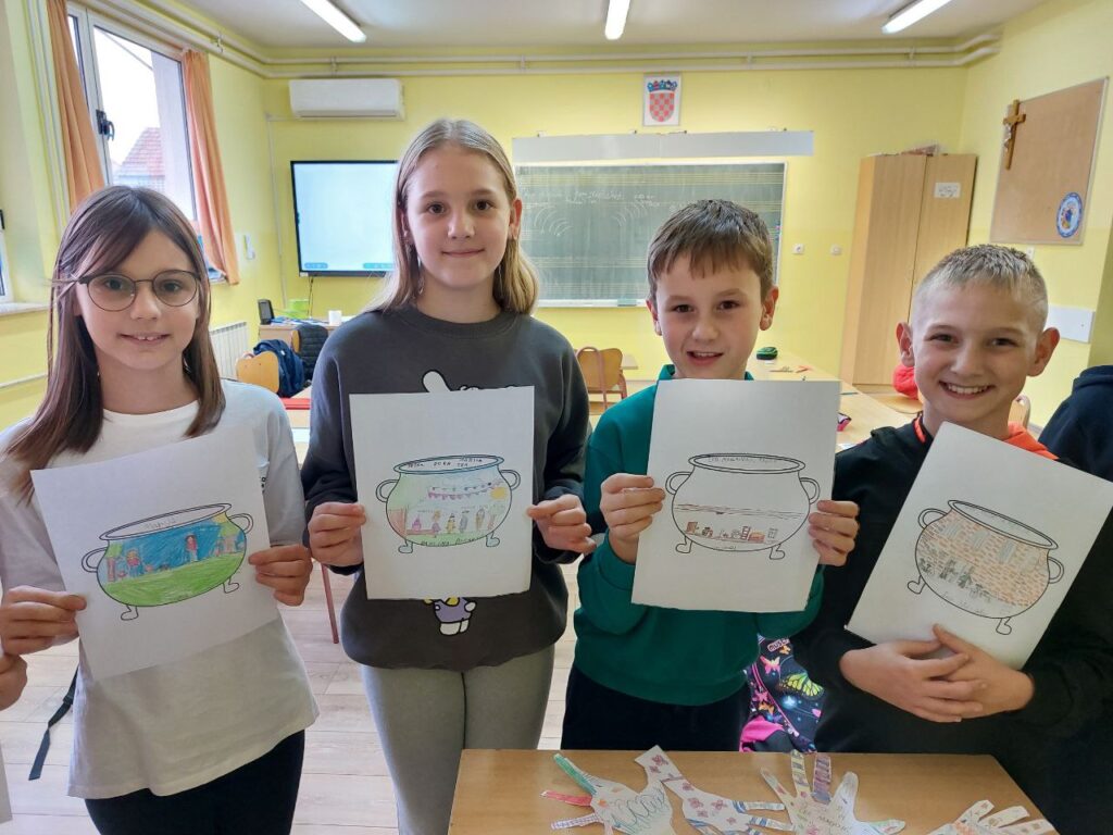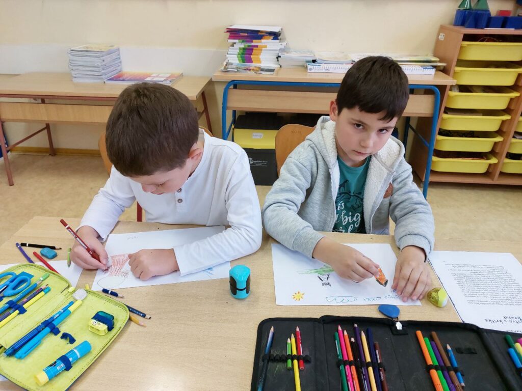 Niži razredi su u 11. mjesecu povodom Mjeseca hrvatske knjige imali radionicu Pravi prijatelji koju je održala knjižničarka. Učenicima se prvo čitala priča o prijateljstvu hrvatske spisateljice, razgovaralo se o pročitanome i o njihovim prijateljima, a zatim su unutar nacrtanog lonca crtali svoj recept za prijateljstvo- svoje prijatelje, sretni zajednički trenutak i simbole prijateljstva. Prvi razred je zatim crtao životinje koje su najbolji prijatelji. Razgovaralo se o životinjskom prijateljstvu kojem su svjedočili uživo ili su o njemu saznali preko interneta. Ostali niži razredi su crtali vlastite ruke kao simbol davanja, a sve njihove su činile zajedništvo koje je vrlo važno u prijateljstvu, kao i dobrota i međusobno pomaganje. Učenici su za kraj napravili dugu sličnosti i dugu razlike i pronašli što ih povezuje, a u čemu su potpuno različiti. Svi su bili zadovoljni kreativnim zadatcima te su se kroz njih još više mogli međusobno povezati i ojačati prijateljstvo. Koliko im je bilo zabavno, možete vidjeti na fotografijama.